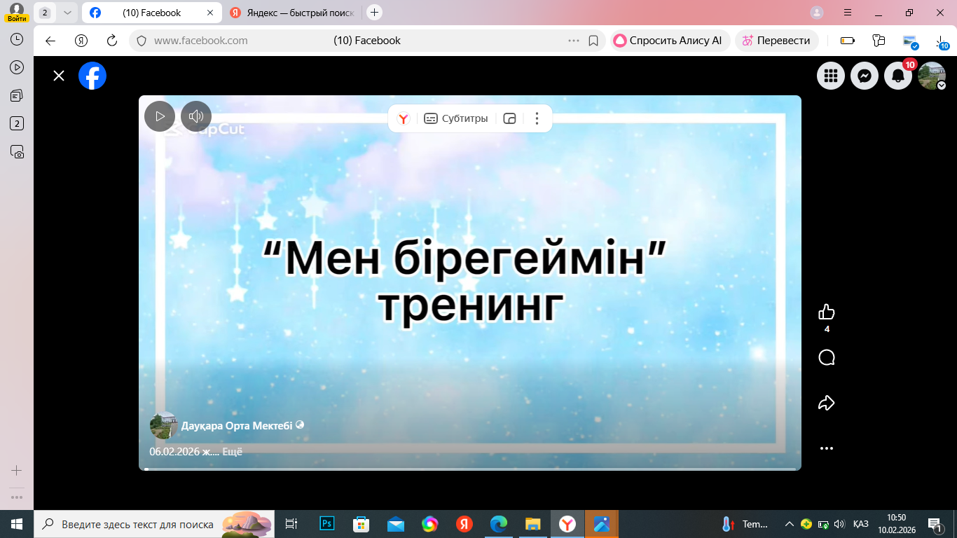 «Позитивті ойлау аумағы» декадасының жоспарына сәйкес, «Мен бірегеймін» атты тренинг өтті.