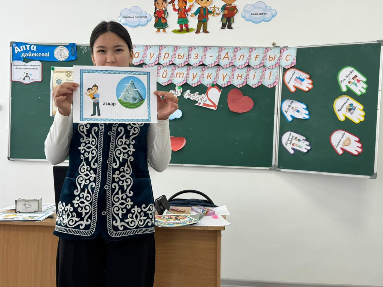 “Күн сайын достыққа, ризашылыққа және толеранттылыққа қадам” атты психологиялық онкүндік жоспарына сәйкес Құнанбаева А.С. 9-сынып оқушыларымен “Біреу бәрі үшін және бәрі біреу үшін” тақырыбында сынып сағатын өткізді. Сынып сағаты барысында оқушылар өзара сыйластық, бірлік пен ұйымшылдықтың маңызы туралы пікір алмасып, түрлі тренингтік жаттығулар мен топтық тапсырмалар орындады. Оқушылар бір-бірін қолдау, түсіну және ортақ мақсатқа бірге жету құндылықтары жайында ой бөлісіп, жағымды атмосфера қалыптастырды.