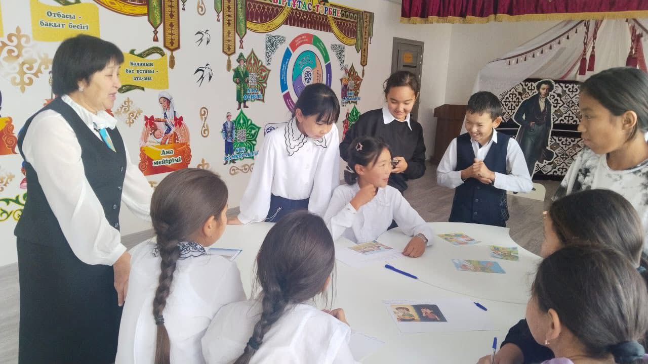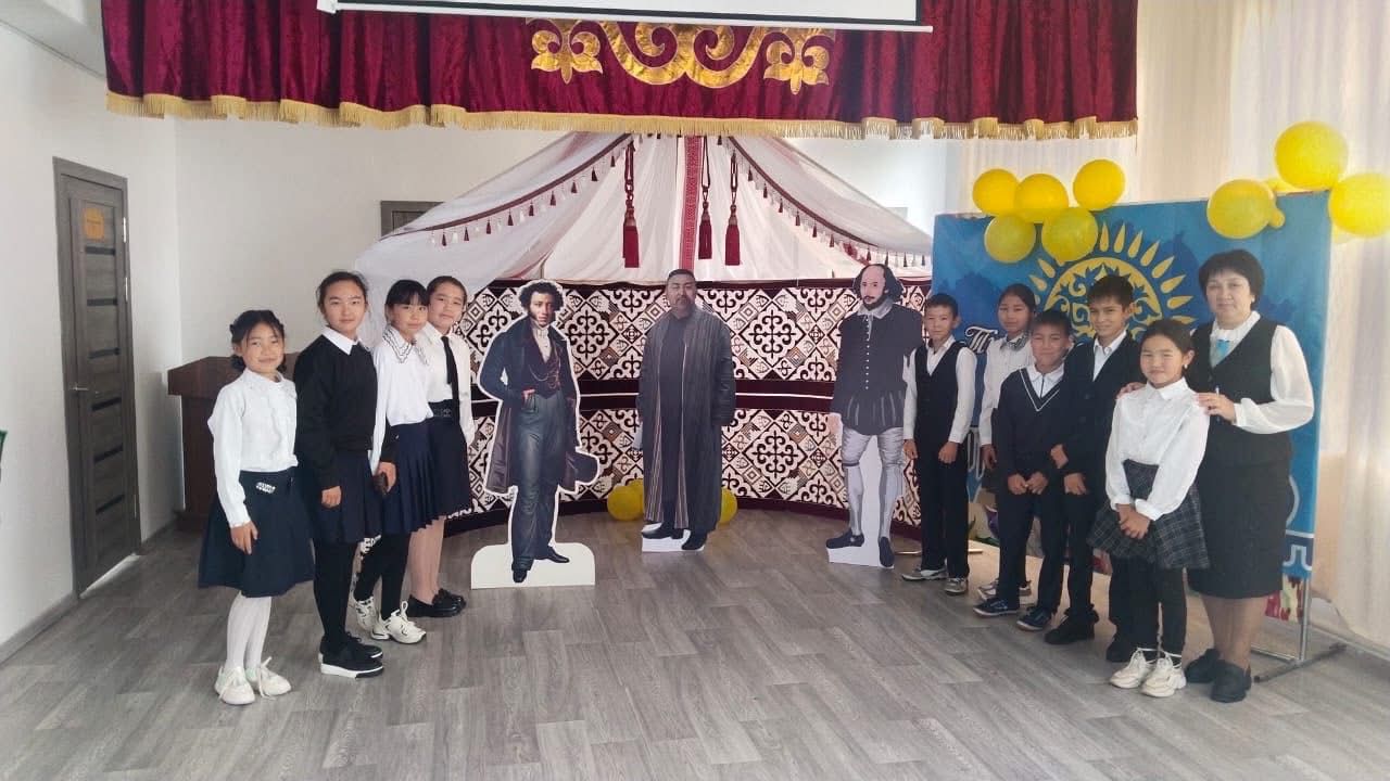 Мажикеева Қымбат Арабовнаның жетекшілігімен Тілдер күніне орай 5,7 сынып оқушыларымен “Polyglot day”, “ Word of the day” ойындары өтті. Ойында суреттер арқылы мақал-мәтелді табу және үш тілдегі нұсқаларын айту болды. Келесі ойында адасқан әріптер арқылы сөздер құрастырып, үш тілде айтылды.