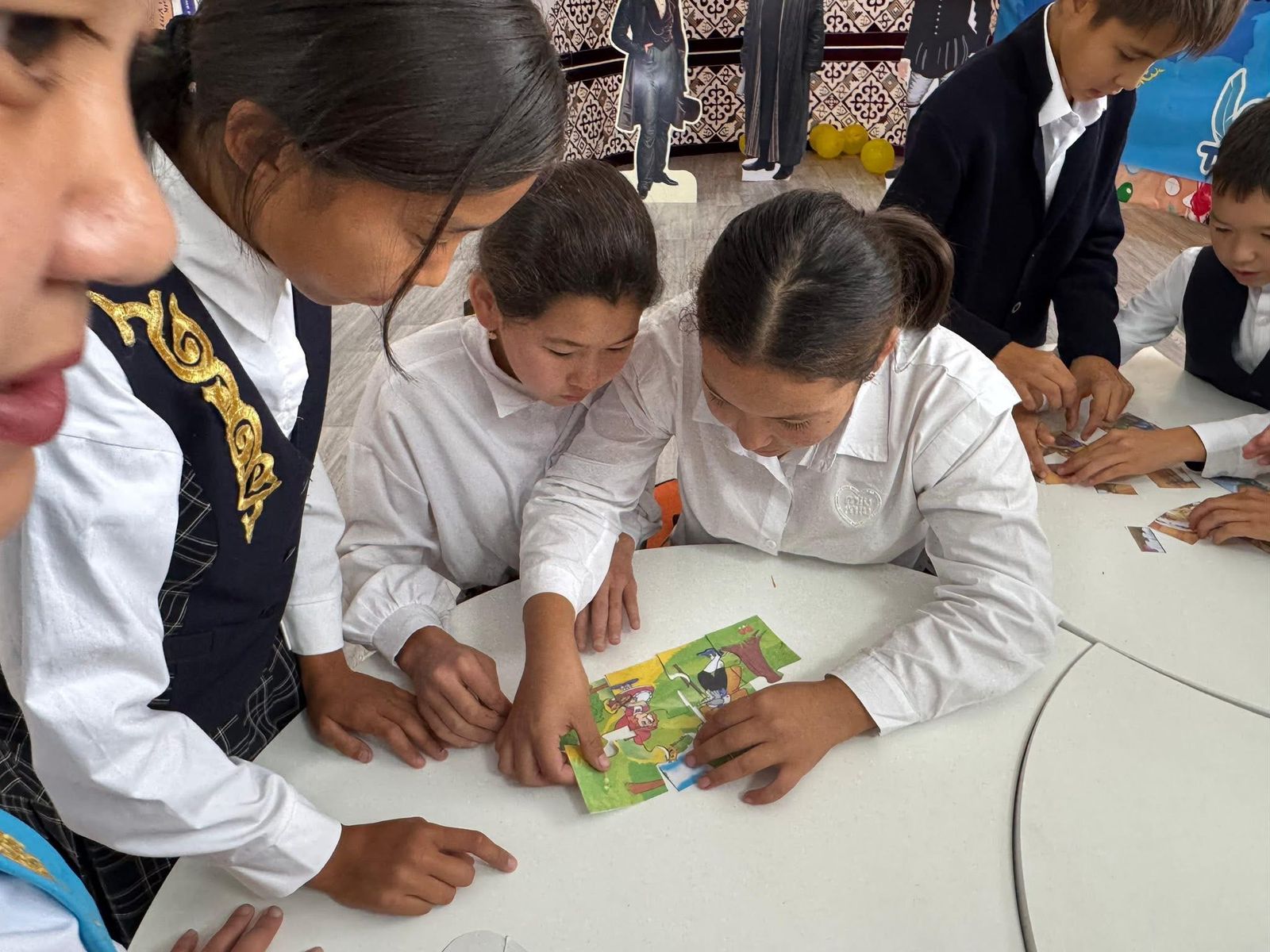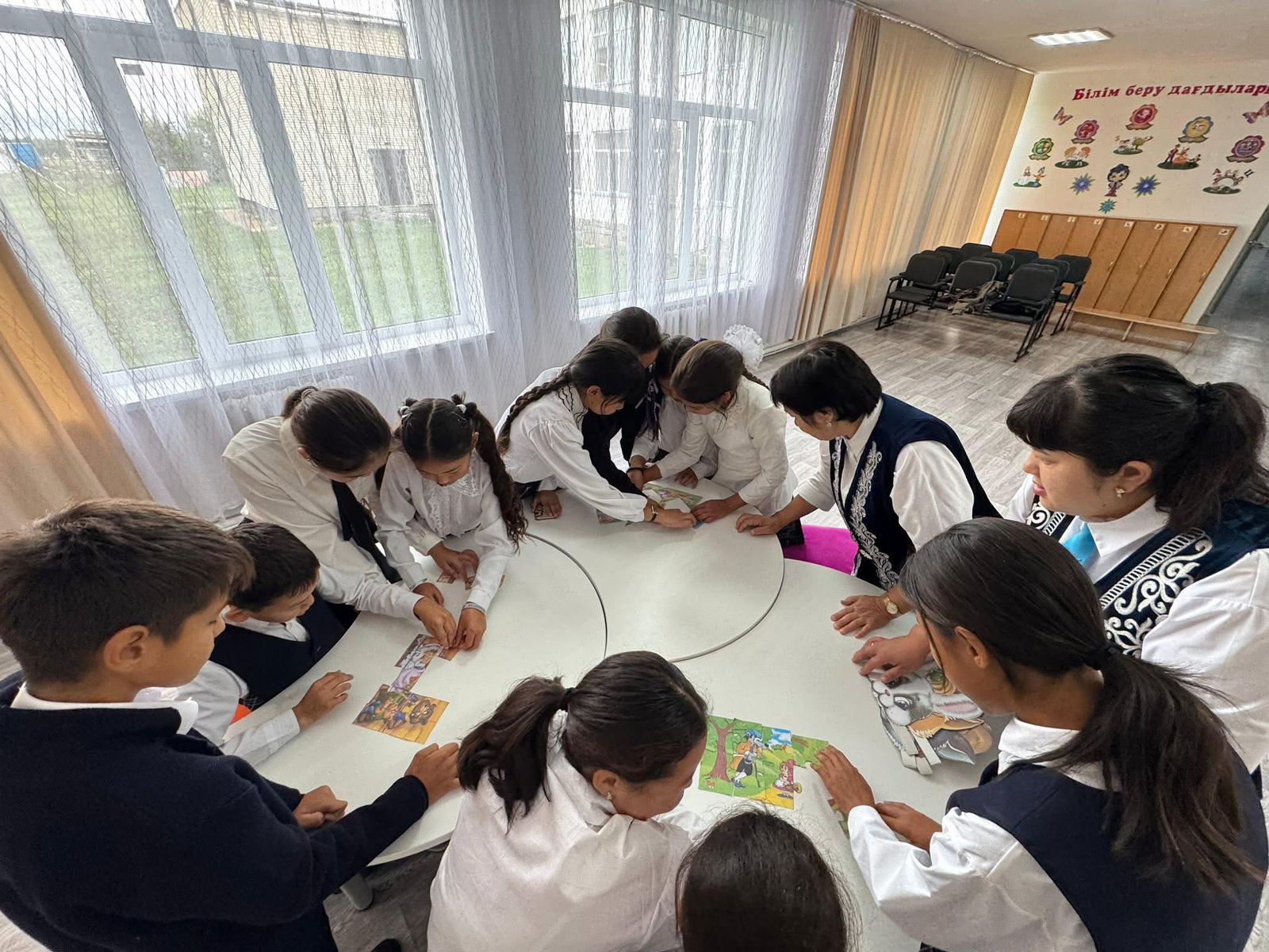 “Сказки оживают” атты тақырыпта орыс тілі пәнінің мұғалімі Абишева Марал Зекентаевнаның бастамасымен қызықты ойындар өткізілді. Ойынға 5,6,7-сынып оқушылары қатысты. Пазлдарды жинау арқылы оқушылар ертегінің орыс тілінде атауын тауып, қысқаша сюжеттік құрылымын баяндап қана қоймай сахналық қойылымын да қойды. Қатысушыларға тәттілер таратылды.