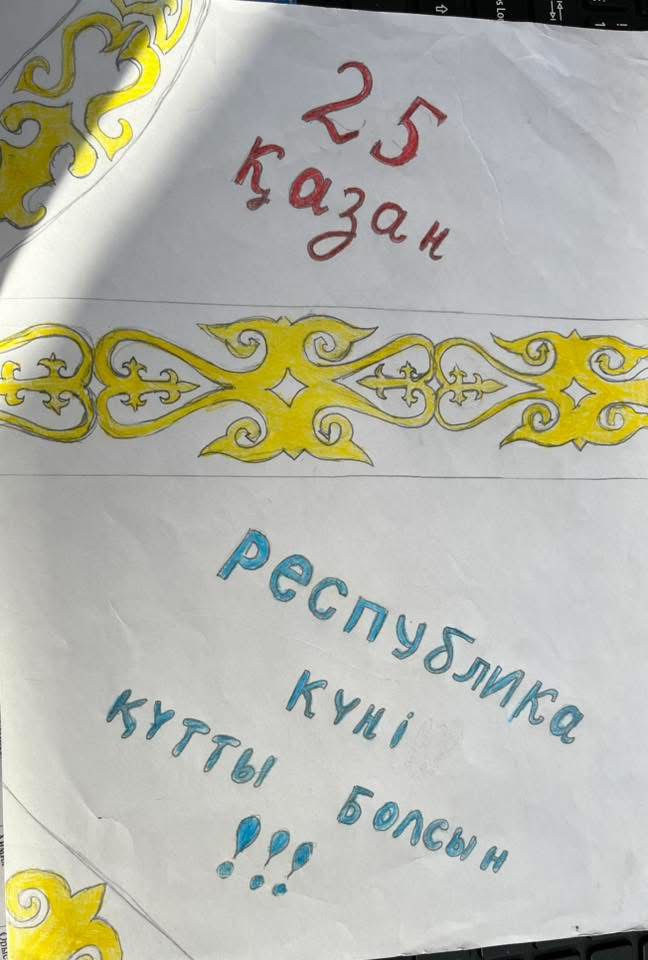 Мектебімізде Республика күніне орай суреттер көрмесі ұйымдастырылды. Көрмеге оқушылардың туындылары қойылды. Әрбір суретте еліміздің тарихы, тәуелсіздік жетістіктері мен табиғаты көрініс тапты. Көрме қонақтары балалардың шығармашылығына жоғары баға беріп, патриоттық рухтағы жұмыстарды ерекше атап өтті. Іс-шара елге деген сүйіспеншілікті арттырып, мерекелік көңіл күй сыйлады