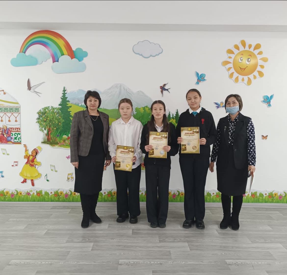 Тіл мамандары Құрмаш Д.К., Кунанбаева А.С., Қалым Г.А. 5–10-сынып оқушылары арасында кітап оқу байқауын өткізді. Байқау оқушылардың көркем әдебиетке деген қызығушылығын арттыру, оқу мәдениетін қалыптастыру және шығарманы терең түсініп, талдай білу дағдыларын дамыту мақсатында ұйымдастырылды.