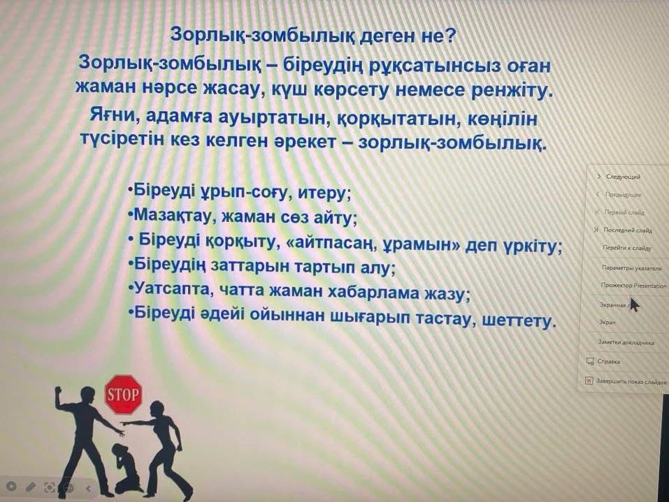 Бүгін, “Зорлық-зомбылықсыз 16 күн” акциясы аясында бастауыш сынып оқушыларымен мектеп психологі «Зорлық-зомбылық деген не?» тақырыбында қысқаша түсіндіру жұмысын жүргізді. Балаларға зорлық-зомбылықтың түрлері, оның неге зиян екені және өздерін қалай қорғау керектігі туралы шағын бейнеролик арқылы түсінікті түрде ақпарат берді.